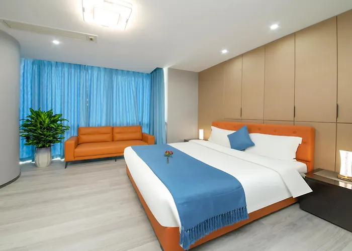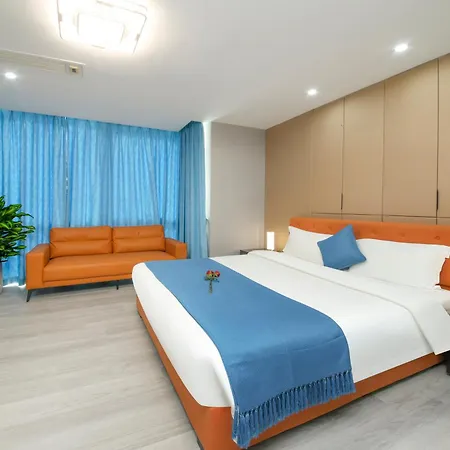 The spacious venue is located in Hai Zhu district of Guangzhou and Pazhou tube station is 5 minutes' walk away. The property offers an equipped kitchen with a microwave oven, an electric kettle, and a cooker.